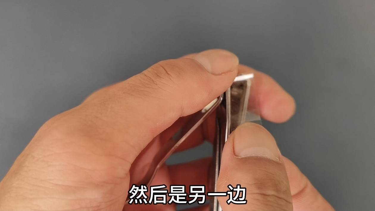 另一边也用同样方法贴上。这样处理后的指甲刀,效果如何呢?来试试看。指甲都剪得差不多了,再试试这个。